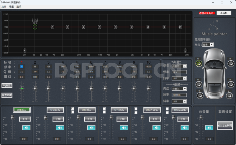 此软件是音乐指针MusicPointer DSP-W6U的专用电脑DSP调音软件,支持音乐指针型号为DSP-W6U的DSP设备调音。